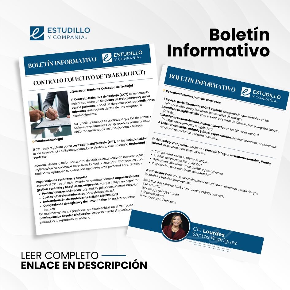 ESTUDILLO Y CIA, S.C. BOLETÍN INFORMATIVO – Contrato Colectivo de Trabajo (CCT) 📰 ¿Qué es un Contrato Colectivo…