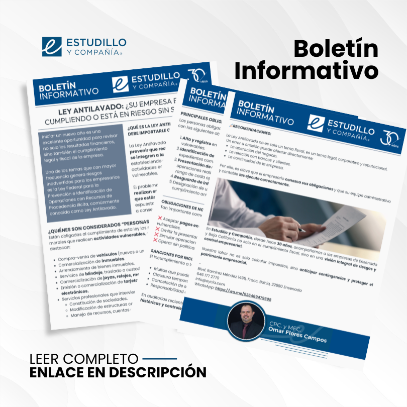 ESTUDILLO Y CIA, S.C. BOLETÍN INFORMATIVO – Ley Antilavado: ¿Su empresa está cumpliendo o está en riesgo sin…