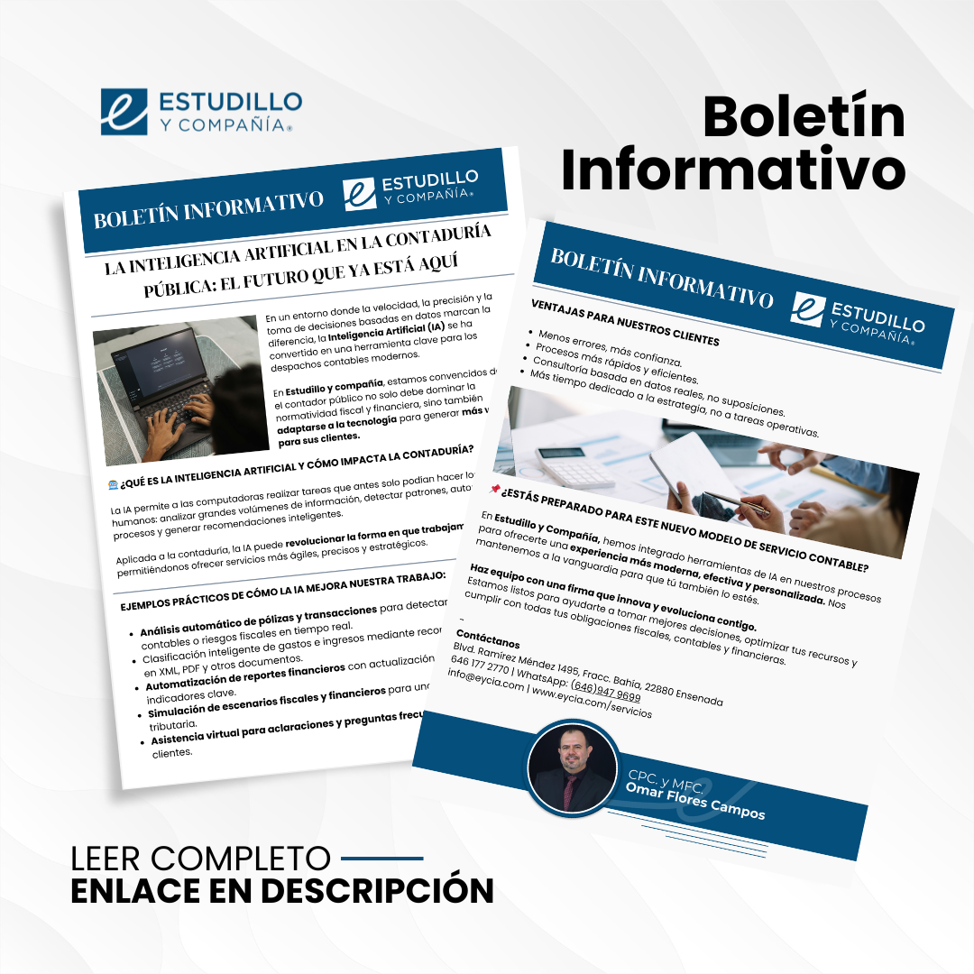 BOLETÍN FISCAL:¿Está tu empresa preparada para los retos fiscales de 2025? ESTUDILLO Y CIA, S.C. Boletín Empresarial Mensual – Enero 2025… Leer más