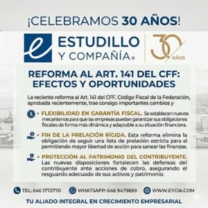 En Estudillo y Cía. Contadores Públicos, celebramos tres décadas de compromiso con la seguridad jurídica y financiera de nuestros clientes en Ensenada y todo México. En el marco de nuestro aniversario, nos permitimos informarles sobre una actualización legislativa de suma relevancia publicada el 9 de abril de 2026 en el Diario Oficial de la Federación (DOF).